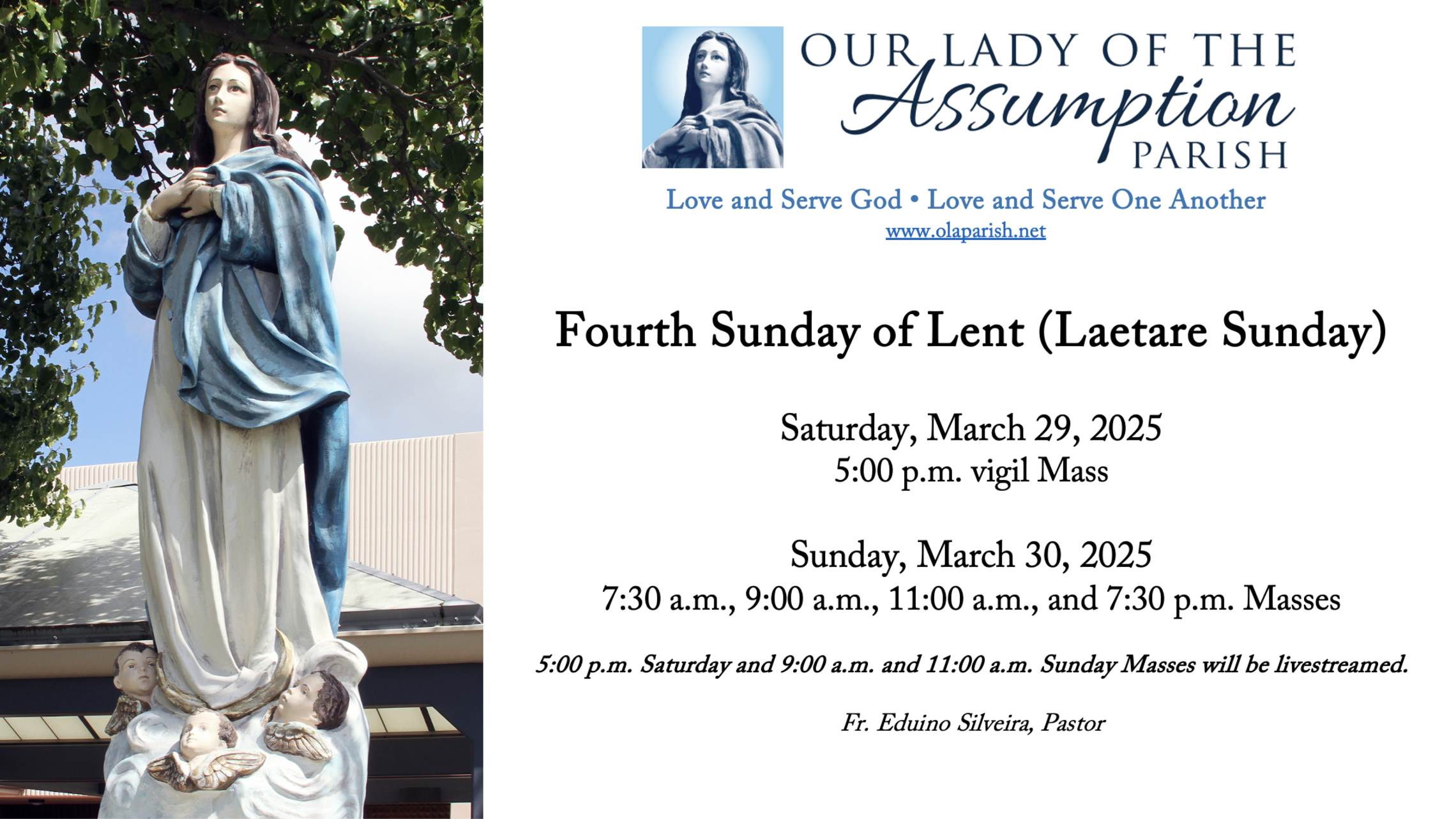 I welcome you to Our Lady of the Assumption Parish on behalf of our staff and the whole faith family.