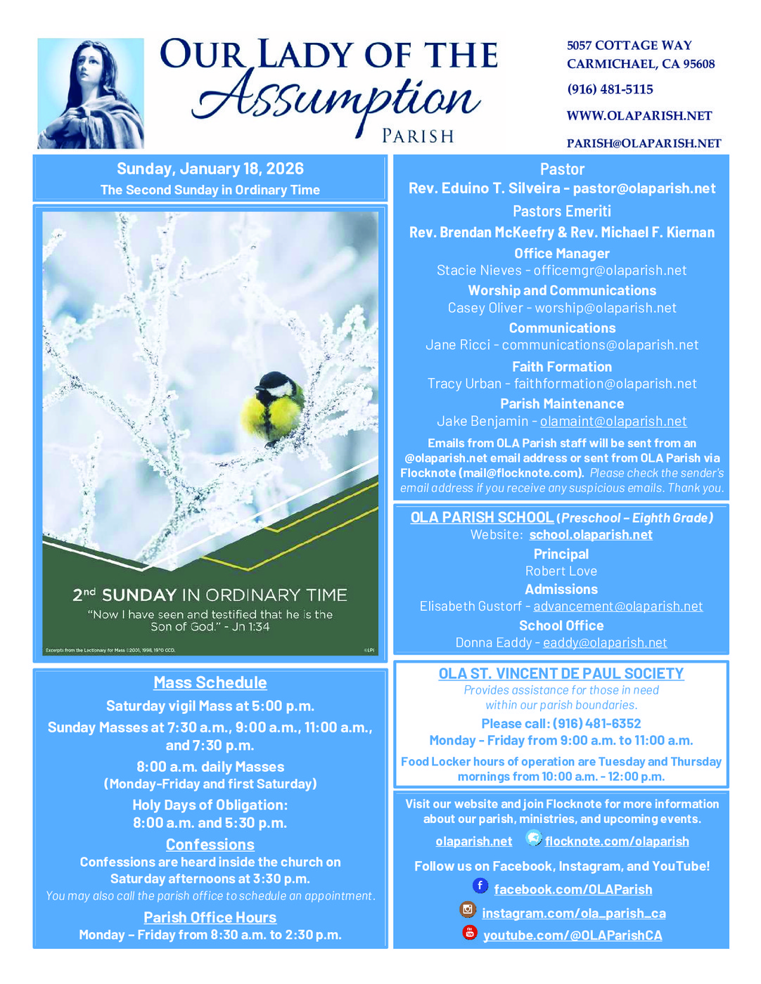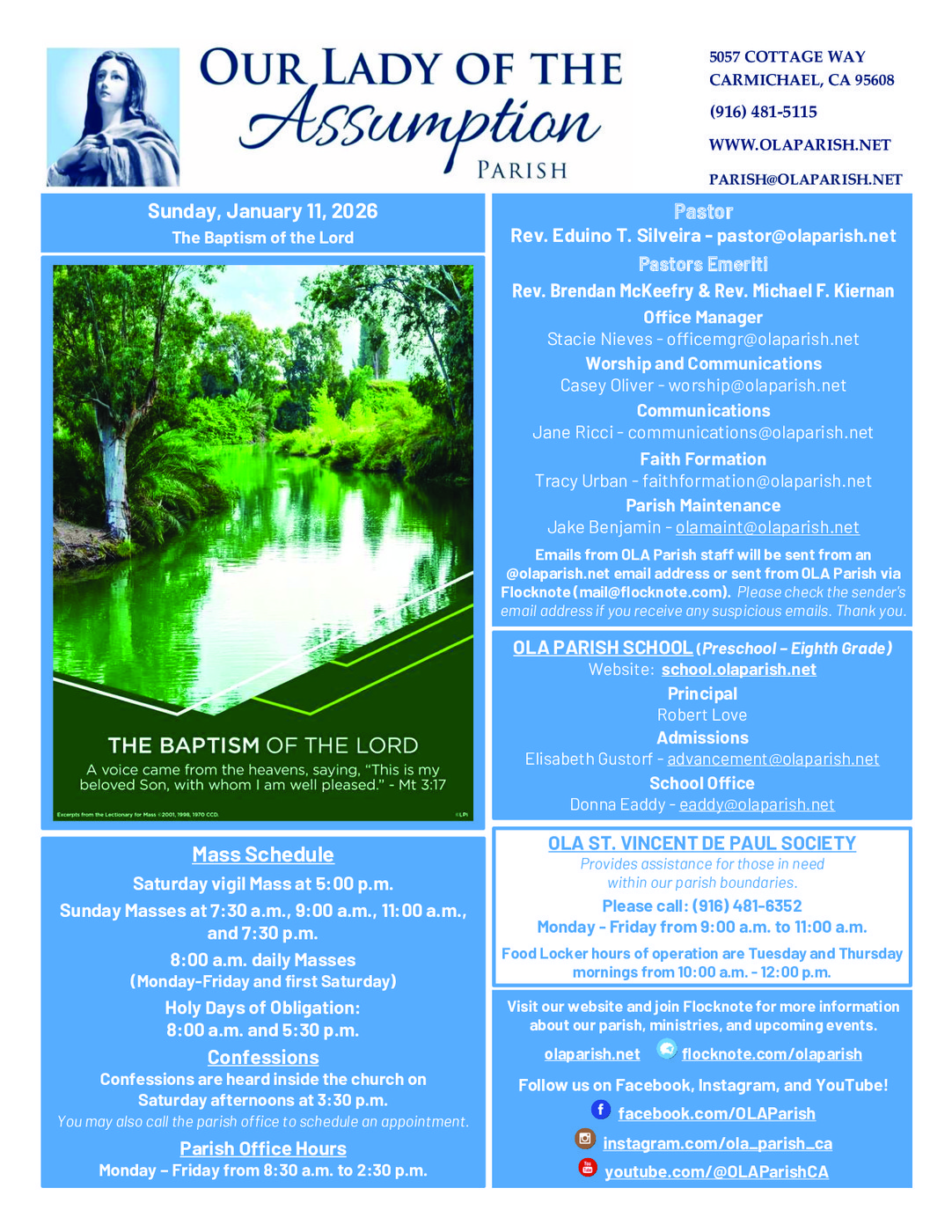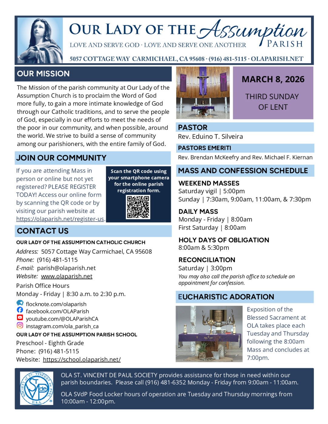 If you have an event to promote or news to share in our parish bulletin, please fill out the Communications Request Form on our parish website at https://olaparish.net/communications-committee. We will try to accomodate the dates you would prefer your item to appear. All communications requests are subject to approval by our pastor Father Eduino Silveira. For general questions or bulletin requests, you may also send an email to communications@olaparish.net.